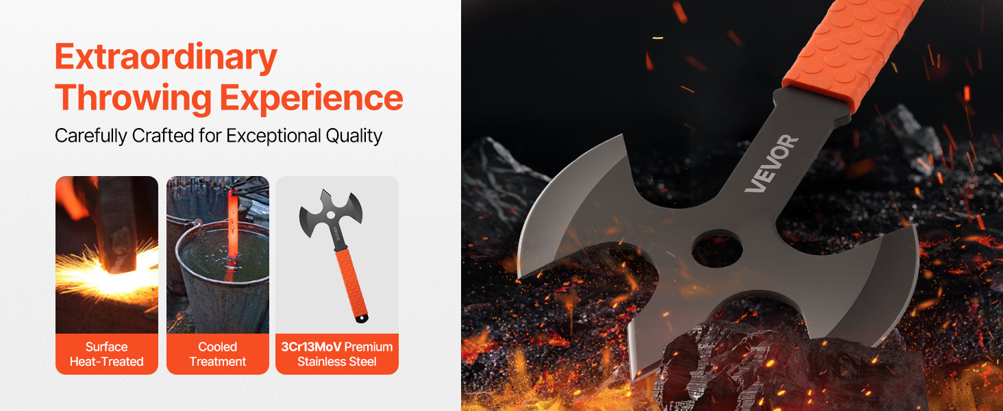 Naše hádzacie sekery a tomahawky sú vyrobené z odolnej nehrdzavejúcej ocele 3Cr13 s tepelne upravenou alebo čiernenou povrchovou úpravou. Sú odolné proti opotrebeniu, hrdzi a vyrobené tak, aby vydržali nekonečné množstvo hodov.
