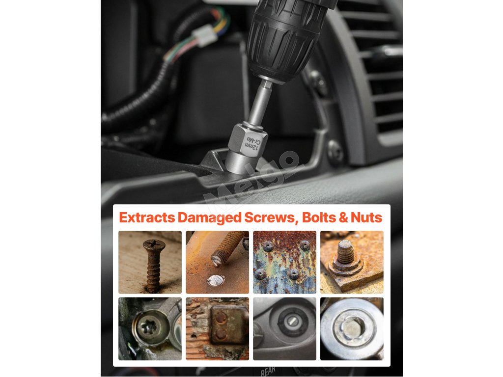 Táto sada na vyťahovanie skrutiek obsahuje viacero typov vyťahovačov a vrtákov rôznych veľkostí, vďaka čomu môžete flexibilne a s istotou pracovať s plytko, hlboko, zlomenými alebo zaseknutými skrutkami.