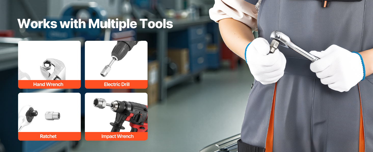 Naša sada na vyťahovanie skrutiek je navrhnutá tak, aby sa dala hladko integrovať s bežným ručným a elektrickým náradím, takže môžete pokračovať v práci so svojím obľúbeným vybavením.