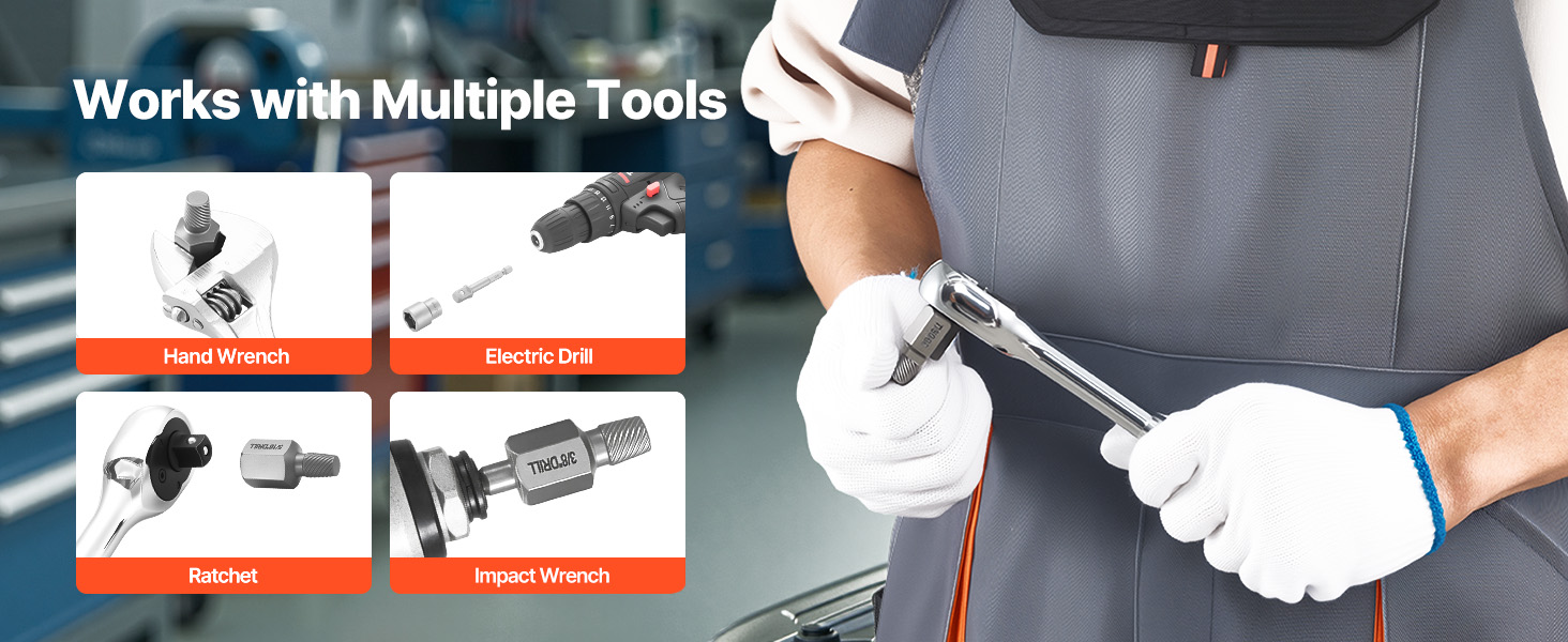 Naša sada na vyťahovanie skrutiek je navrhnutá tak, aby sa dala hladko integrovať s bežným ručným a elektrickým náradím, takže môžete pokračovať v práci s vašim obľúbeným nastavením.