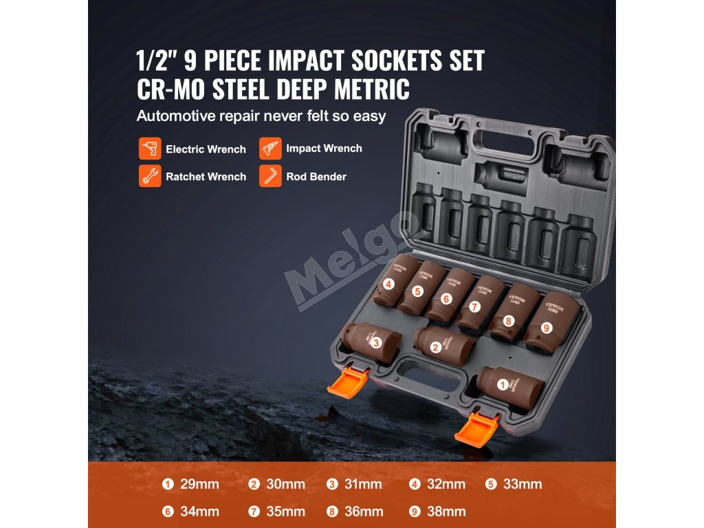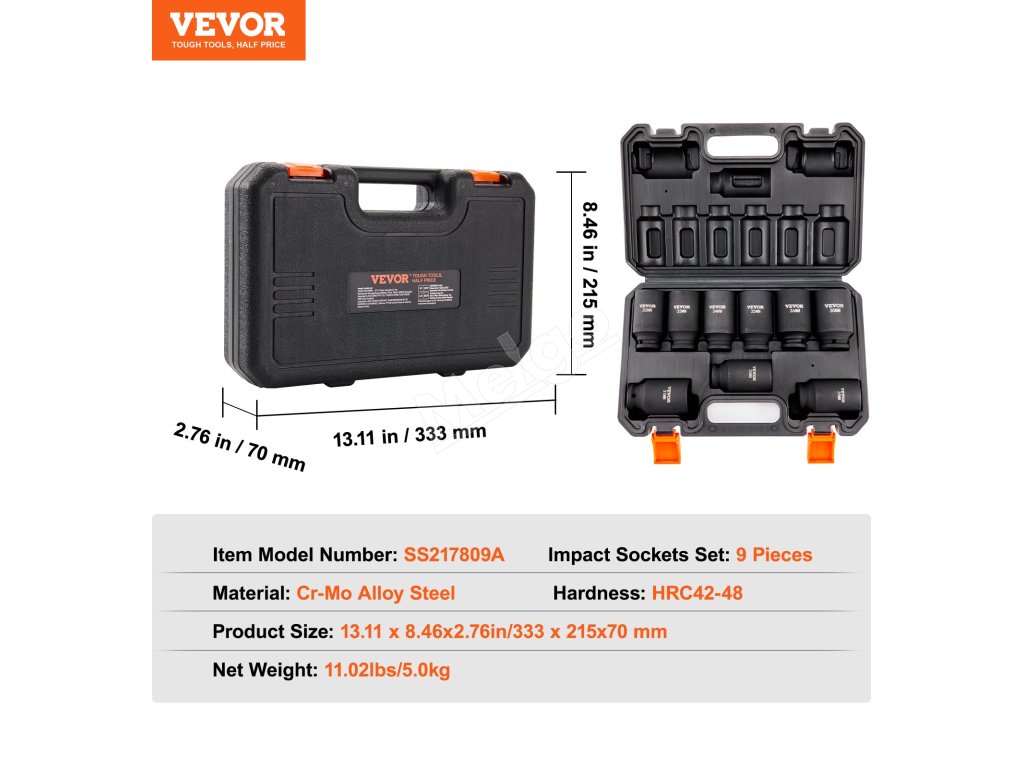 Hľadáte profesionálnu a prenosnú sadu rázových hlavíc? 9-dielna sada rázových nástrčiek VEVOR ponúka kompletný sortiment náradia, ktorý je vhodný najmä na opravy automobilov rôznych značiek.