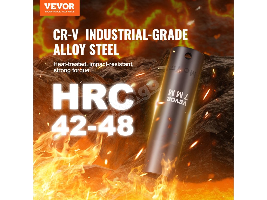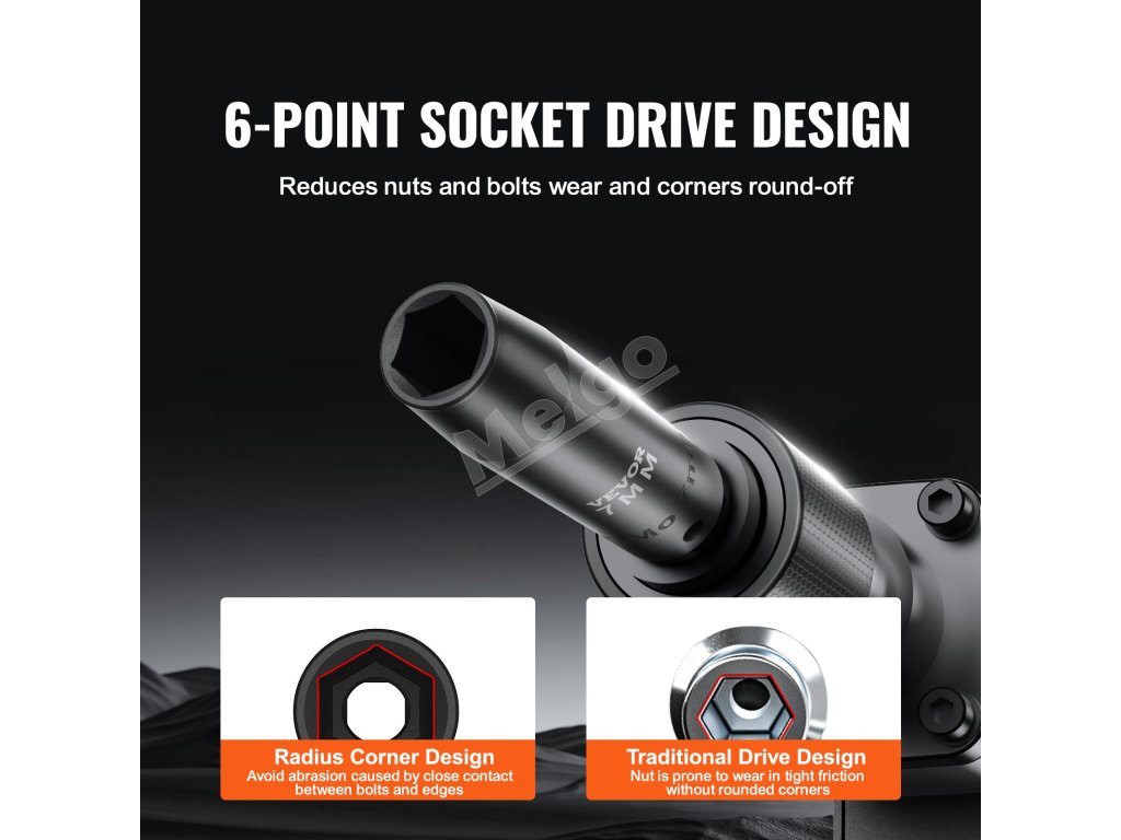 Šesťhranná konštrukcia zásuvky vytvára počas práce medzeru medzi maticou a okrajmi, čím zabraňuje nadmernému treniu a opotrebovaniu. Vydrží väčšiu nárazovú silu a účinne odstraňuje skrutky.
