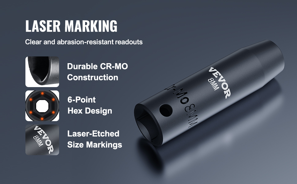 Šesťhranná konštrukcia zásuvky vytvára počas práce medzeru medzi maticou a okrajmi, čím zabraňuje nadmernému treniu a opotrebovaniu. Vydrží väčšiu nárazovú silu a účinne odstraňuje skrutky.