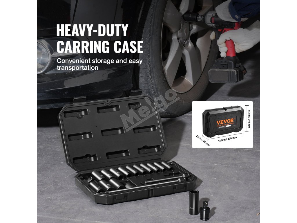 Hľadáte profesionálnu a prenosnú sadu rázových hlavíc? VEVOR 18-dielna sada rázových nástrčiek ponúka kompletný sortiment náradia, ktorý je vhodný najmä na opravy automobilov rôznych značiek.