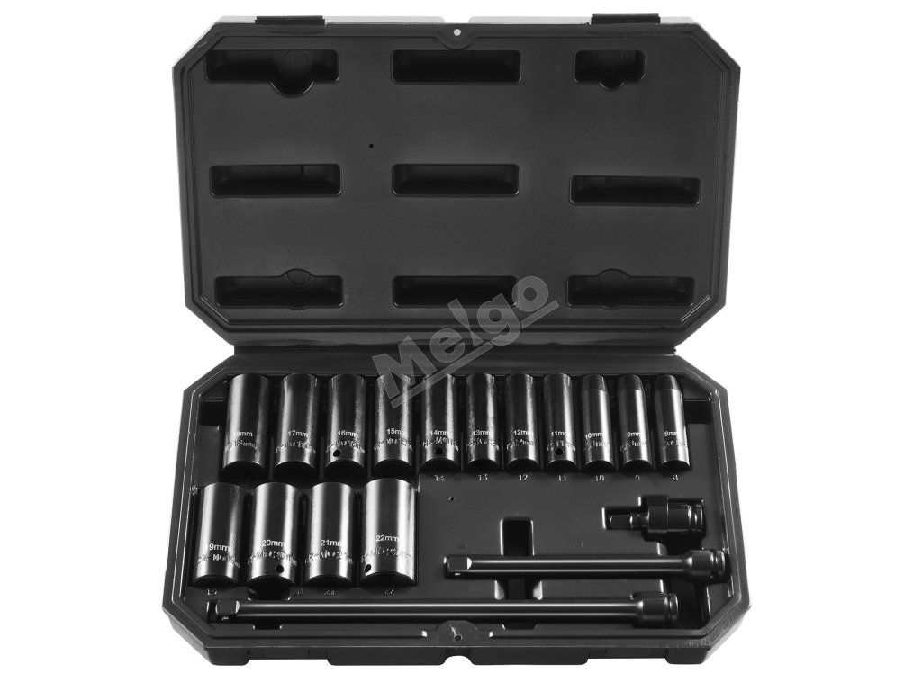 Sada hlbokých nástrčných hlavíc 3/8" 18 dielov, 8–22 mm, 6-hran cr-v