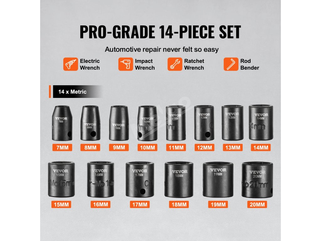 Sada nástrčných hlavíc 3/8" 14 ks metrické 7-20 mm 6-hranné cr-mo oceľ