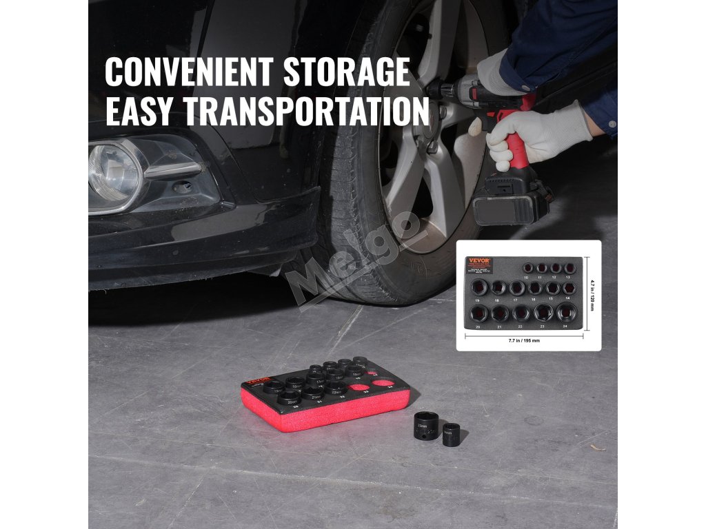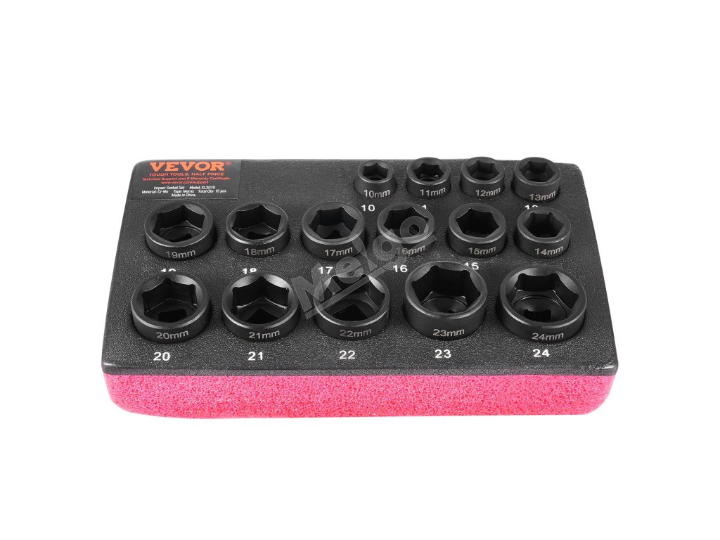 Hľadáte profesionálnu a prenosnú sadu rázových hlavíc? 15-dielna sada rázových nástrčiek VEVOR ponúka kompletný sortiment náradia, ktorý je vhodný najmä na opravy automobilov rôznych značiek.