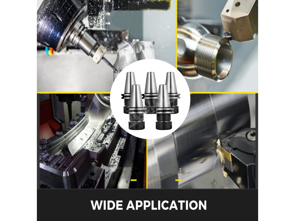 Sada 5 vysoko presných CNC držiakov nástrojov CAT 40, vyrobených zo 40Cr. Vhodné pre CNC sústruhy/frézovanie, vŕtacie lisy a ručné náradie s veľkým zaťažením. Vyznačujú sa vysokou rýchlosťou, stabilným výkonom.