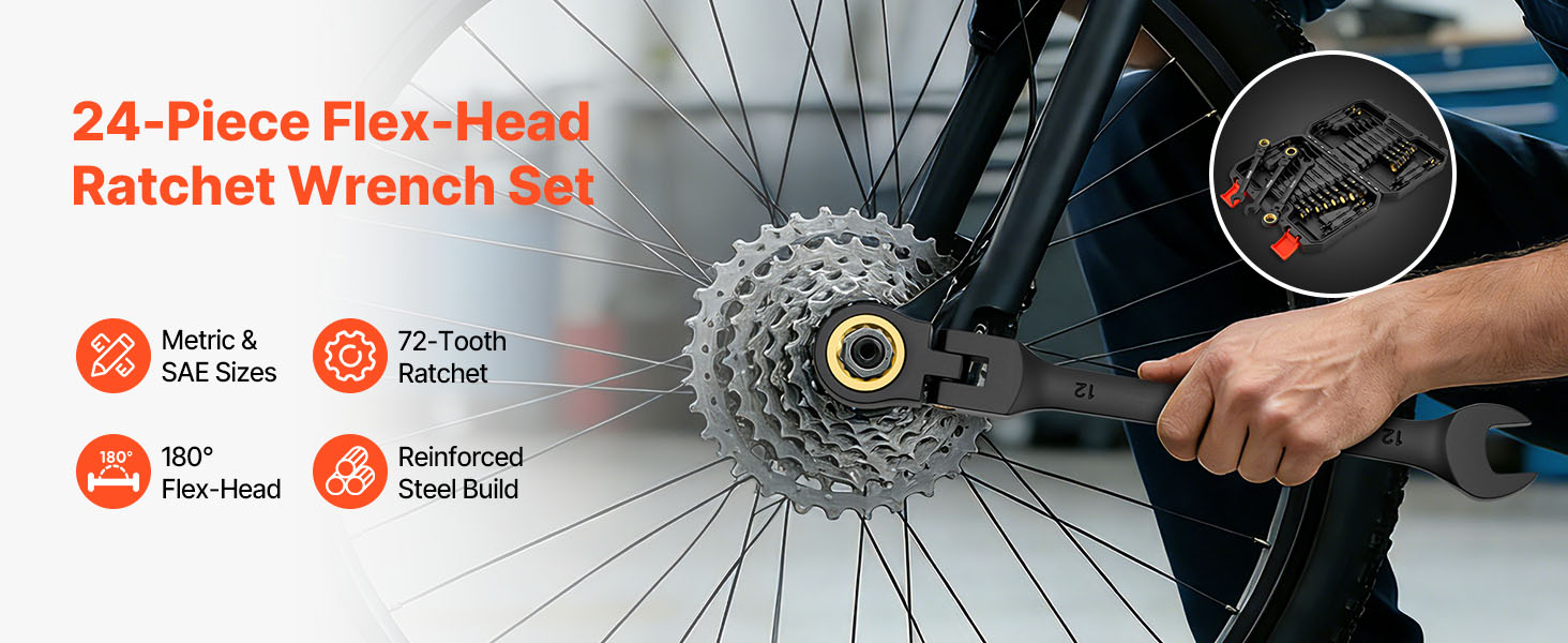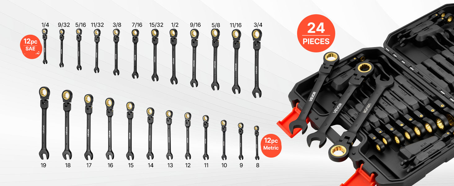 Sada flexibilných račňových kľúčov, 24 dielov, sae/metric, s kufríkom