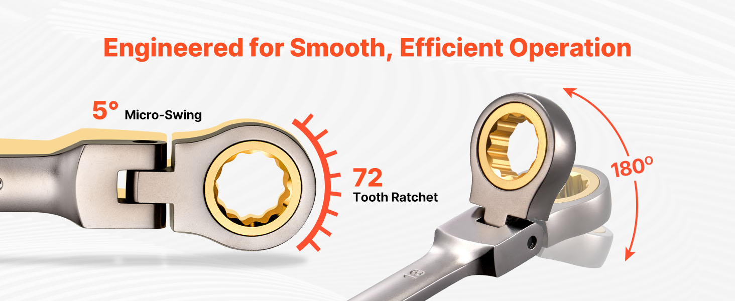 Táto sada račňových kľúčov s ohybnou hlavou je navrhnutá tak, aby s ľahkosťou zvládala bežné opravárske úlohy a zabezpečovala plynulý pracovný postup – či už opravujete, ladíte alebo montujete.
