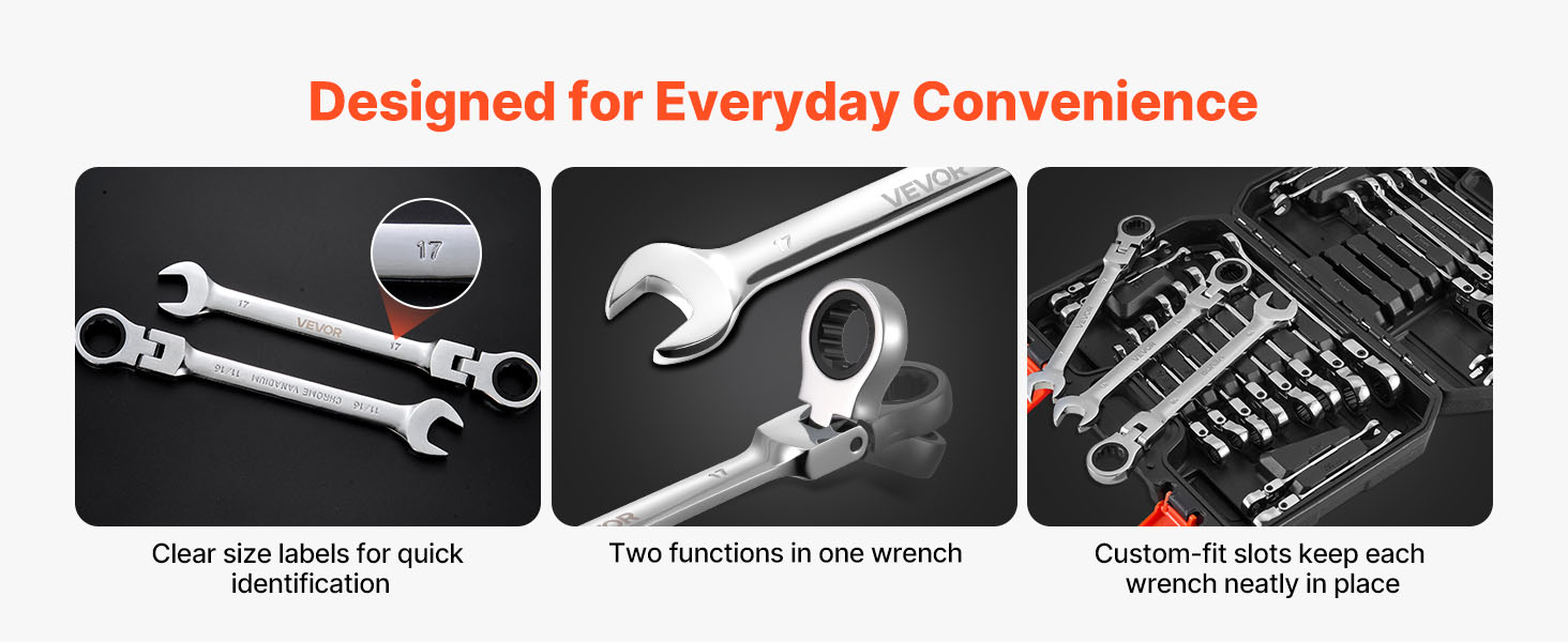 Táto sada račňových kľúčov s ohybnou hlavou je navrhnutá tak, aby s ľahkosťou zvládala bežné opravárske úlohy a zabezpečovala plynulý pracovný postup – či už opravujete, ladíte alebo montujete.