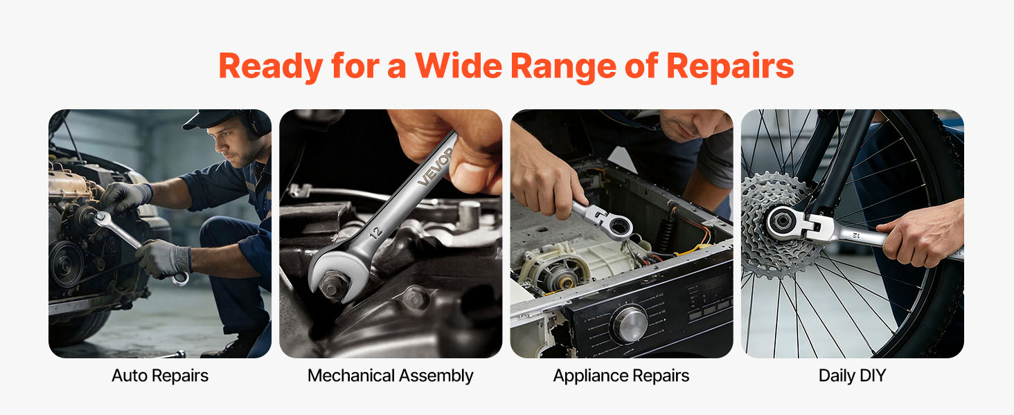 Či už ide o údržbu vozidla, opravu domácich spotrebičov alebo každodenné projekty DIY, sada kľúčov s račňou sa ľahko prispôsobí rôznym úlohám, čo z nej robí spoľahlivého partnera pre bežné opravy.