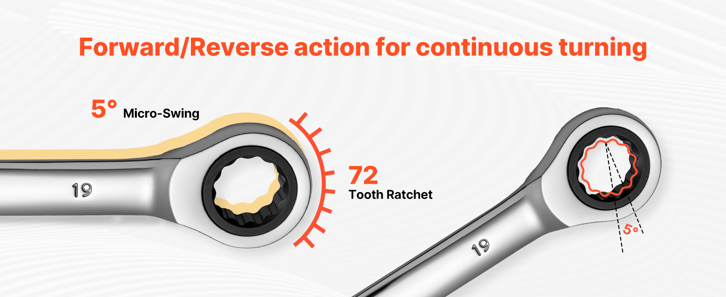 Sada račňových kombinovaných kľúčov ponúka plynulé prepínanie smeru pre neprerušované otáčanie, vďaka čomu je opakované upevňovanie pohodlnejšie.