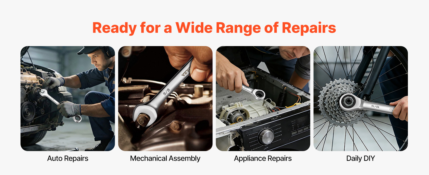 Či už ide o údržbu vozidla, opravu domácich spotrebičov alebo každodenné projekty DIY, sada račňových kľúčov sa ľahko prispôsobí rôznym úlohám, čo z nej robí spoľahlivého partnera pre bežné opravy.