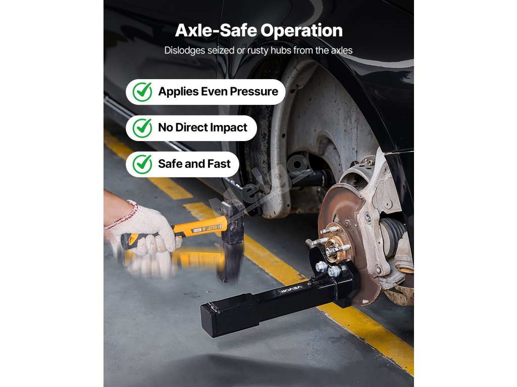 Tento nástroj na demontáž nábojov kolies je vybavený zosilnenou upevňovacou doskou, ktorá je odolná a vydrží viacero nárazov.