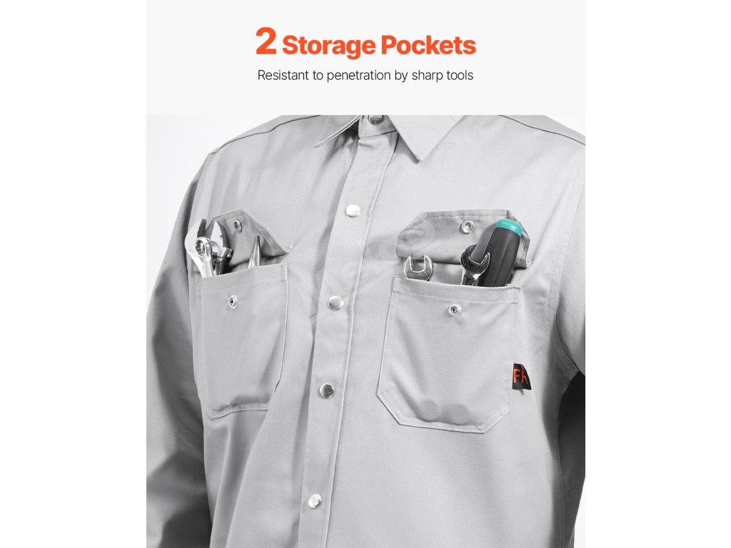 Naša žiaruvzdorná bunda vybavená 2 vreckami poskytuje úložný priestor pre vaše základné nástroje a osobné veci, čím zabezpečuje ich bezpečnosť a ľahký prístup a udržuje vás pripravených na danú úlohu.