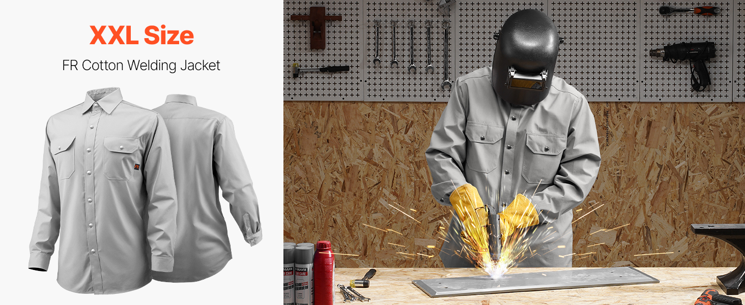 Zostaňte v bezpečí a pohodlí s našou 7 oz. FR čisto bavlnenou zváračskou bundou. Je odolná voči plameňom, priedušná a možno ju prať v práčke, poskytuje spoľahlivú ochranu proti iskrám a plameňom. Vďaka nastaviteľným manžetám, robustným kovovým gombíkom a 2 praktickým vreckám je ideálnym spoločníkom pri zváraní.