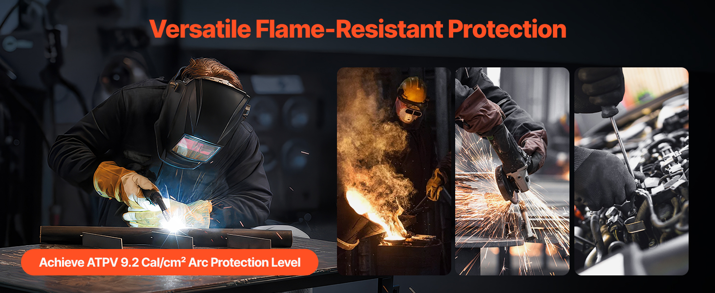 Táto všestranná bavlnená zváračská bunda odolná voči plameňom ponúka výnimočnú ochranu, dosahuje úroveň ochrany proti oblúku ATPV 9,2 Cal/cm², čím účinne odoláva vysokým teplotám a plameňom.