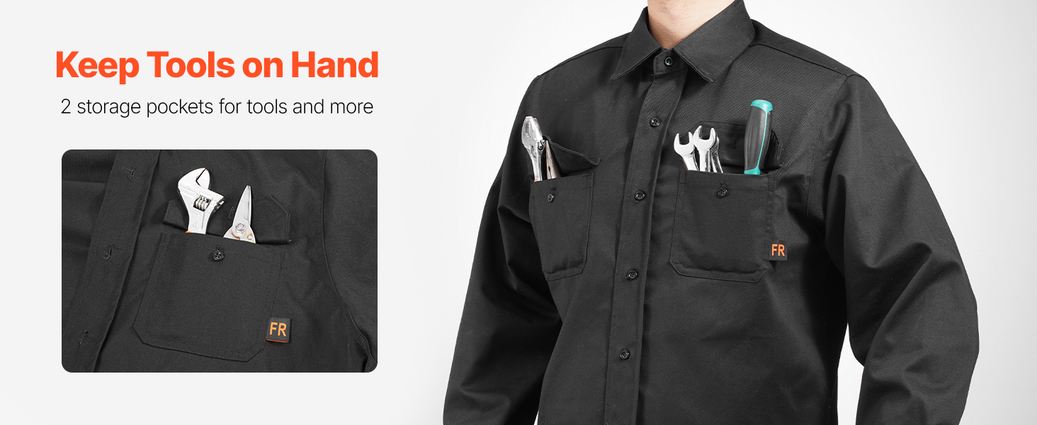 Naša žiaruvzdorná bunda vybavená 2 vreckami poskytuje úložný priestor pre vaše základné nástroje a osobné veci, čím zabezpečuje ich bezpečnosť a ľahký prístup a udržuje vás pripravených na danú úlohu.