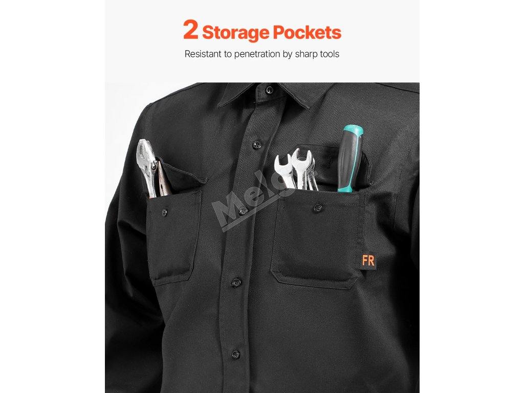 Naša žiaruvzdorná bunda vybavená 2 vreckami poskytuje úložný priestor pre vaše základné nástroje a osobné veci, čím zabezpečuje ich bezpečnosť a ľahký prístup a udržuje vás pripravených na danú úlohu.