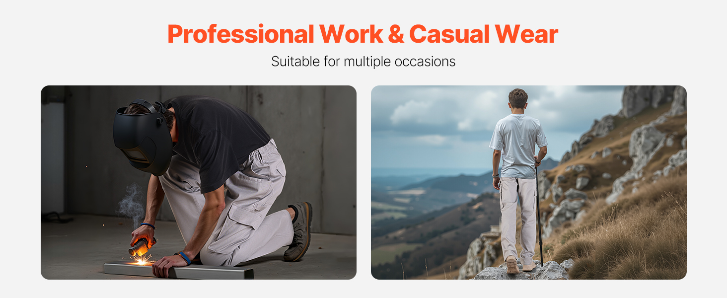 Tieto zváračské nohavice sú k dispozícii v sivej, čiernej, khaki a tmavomodrej farbe. Sú viac než len profesionálnou zváračskou výbavou, ale slúžia aj ako štýlová a praktická voľba na každodenné nosenie - bez problémov prechádzajú z práce na dochádzanie do práce aj na bežné výlety.