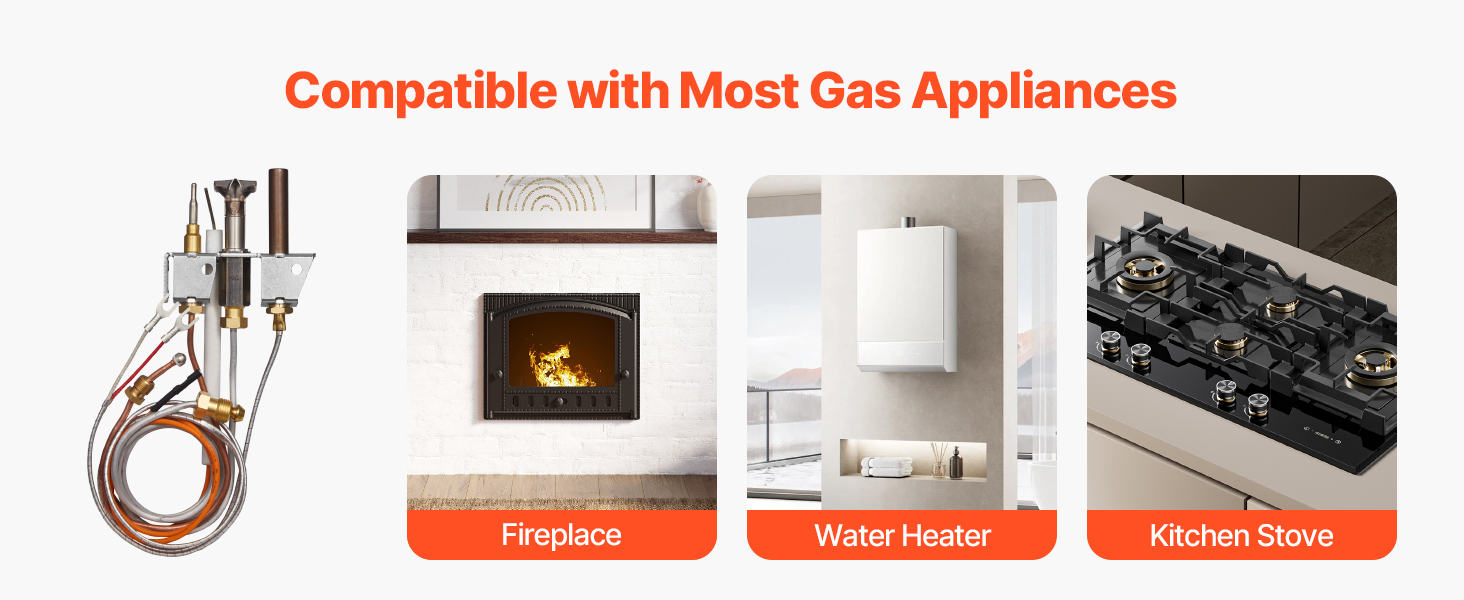 Táto zostava plynového pilotného zapaľovania je kompatibilná s väčšinou bežných krbov na trhu. Hodí sa aj na domáce ohrievače vody a kuchynské sporáky, čím ľahko spĺňa potreby zapaľovania rôznych plynových spotrebičov.