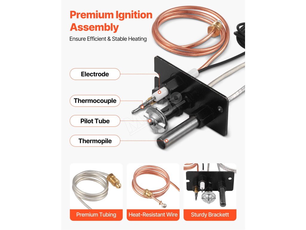 Táto zostava pilotného zapaľovania krbu obsahuje jasný návod, ktorý vám umožní jednoducho vymeniť pôvodné diely. Ak nemáte skúsenosti s inštaláciou, odporúčame vám obrátiť sa na odborníka. Po dokončení inštalácie vykonajte komplexnú skúšku, aby ste zabezpečili stabilnú prevádzku.