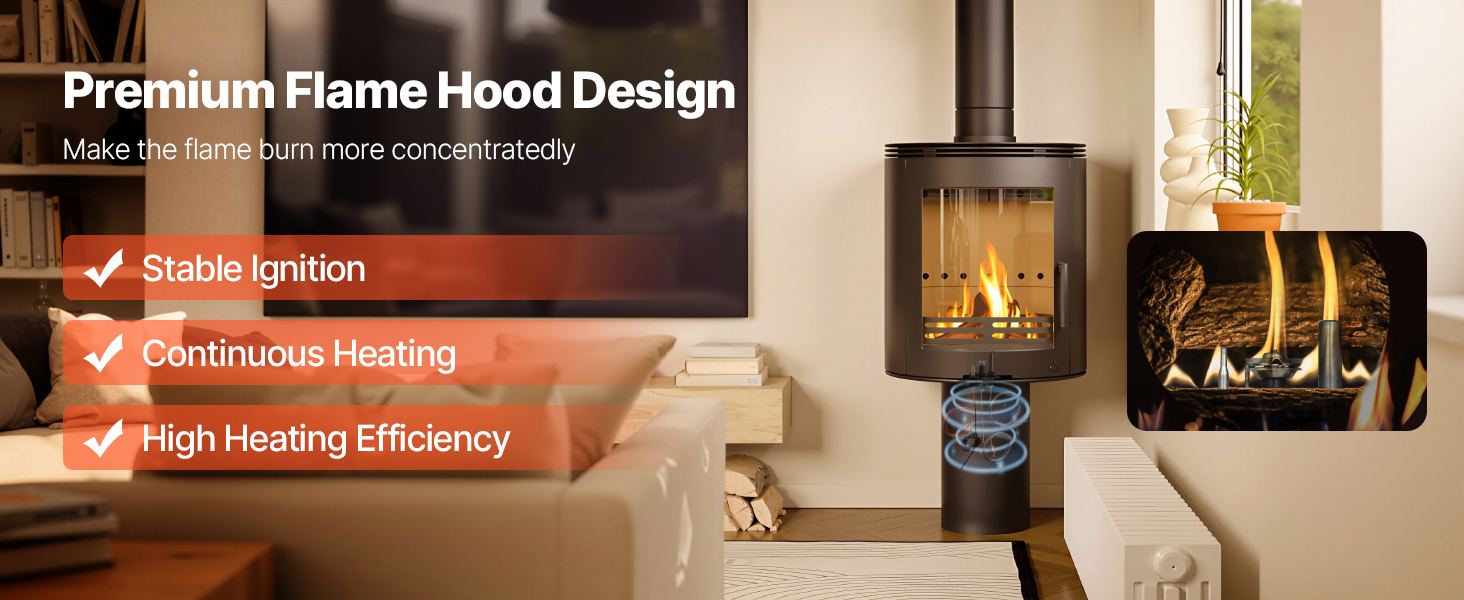 Naša plynová pilotná zostava krbu má prémiovú konštrukciu krytu plameňa, vďaka ktorej výkonný plameň horí stabilnejšie a realizuje rýchle a úplné spaľovanie. Stabilný plameň nepretržite dodáva vysokú tepelnú energiu, čím výrazne zvyšuje účinnosť vykurovania.