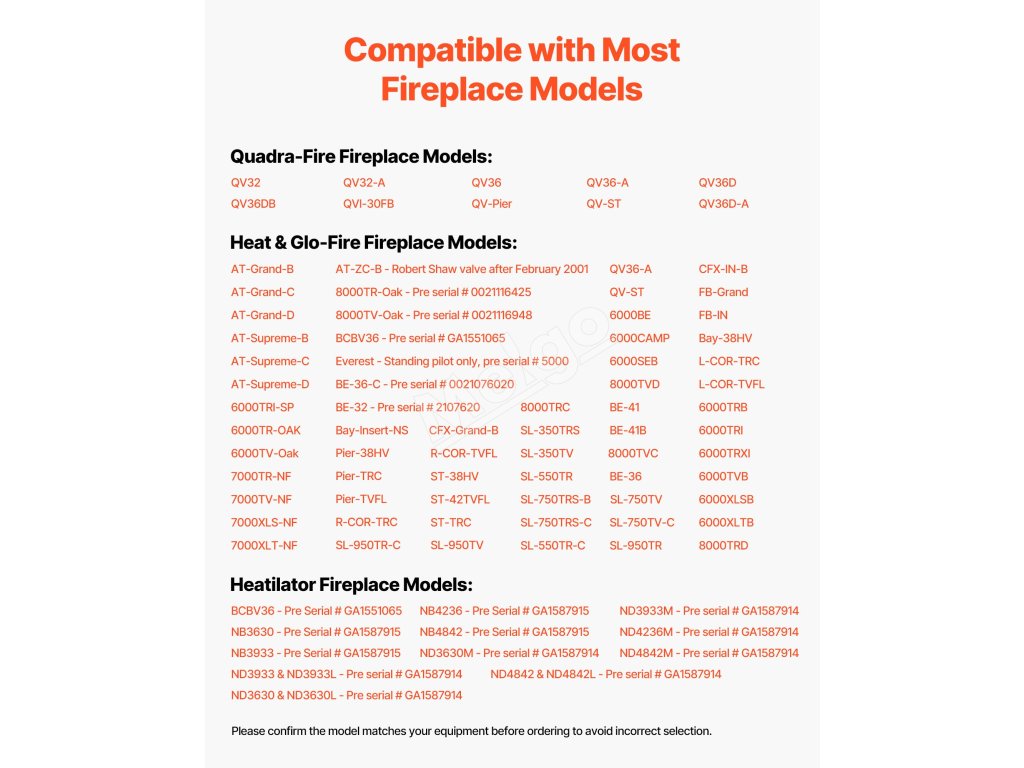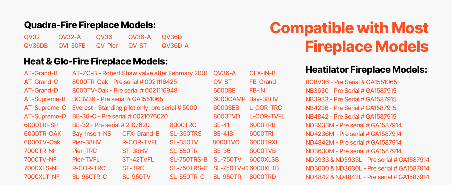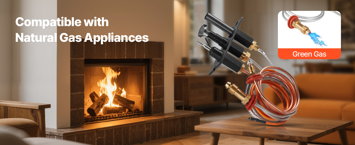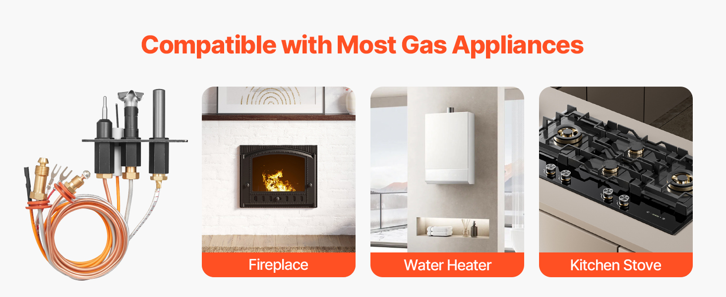 Táto zostava plynového pilotného zapaľovania je kompatibilná s väčšinou bežných krbov na trhu. Hodí sa aj na domáce ohrievače vody a kuchynské sporáky, čím ľahko spĺňa potreby zapaľovania rôznych plynových spotrebičov.