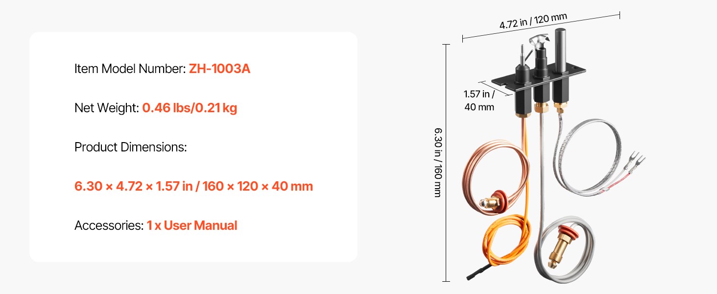 Táto zostava pilotného zapaľovania krbu obsahuje jasný návod, ktorý vám umožní jednoducho vymeniť pôvodné diely. Ak nemáte skúsenosti s inštaláciou, odporúčame obrátiť sa na odborníka. Po dokončení inštalácie vykonajte komplexnú skúšku, aby ste zabezpečili stabilnú prevádzku.