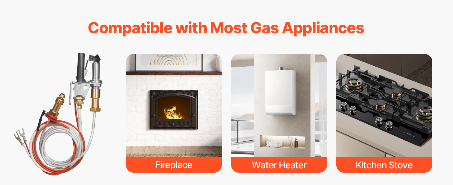 Táto zostava plynového pilotného zapaľovania je kompatibilná s väčšinou bežných krbov na trhu. Hodí sa aj na domáce ohrievače vody a kuchynské sporáky, čím ľahko spĺňa potreby zapaľovania rôznych plynových spotrebičov.