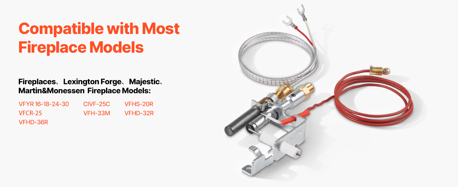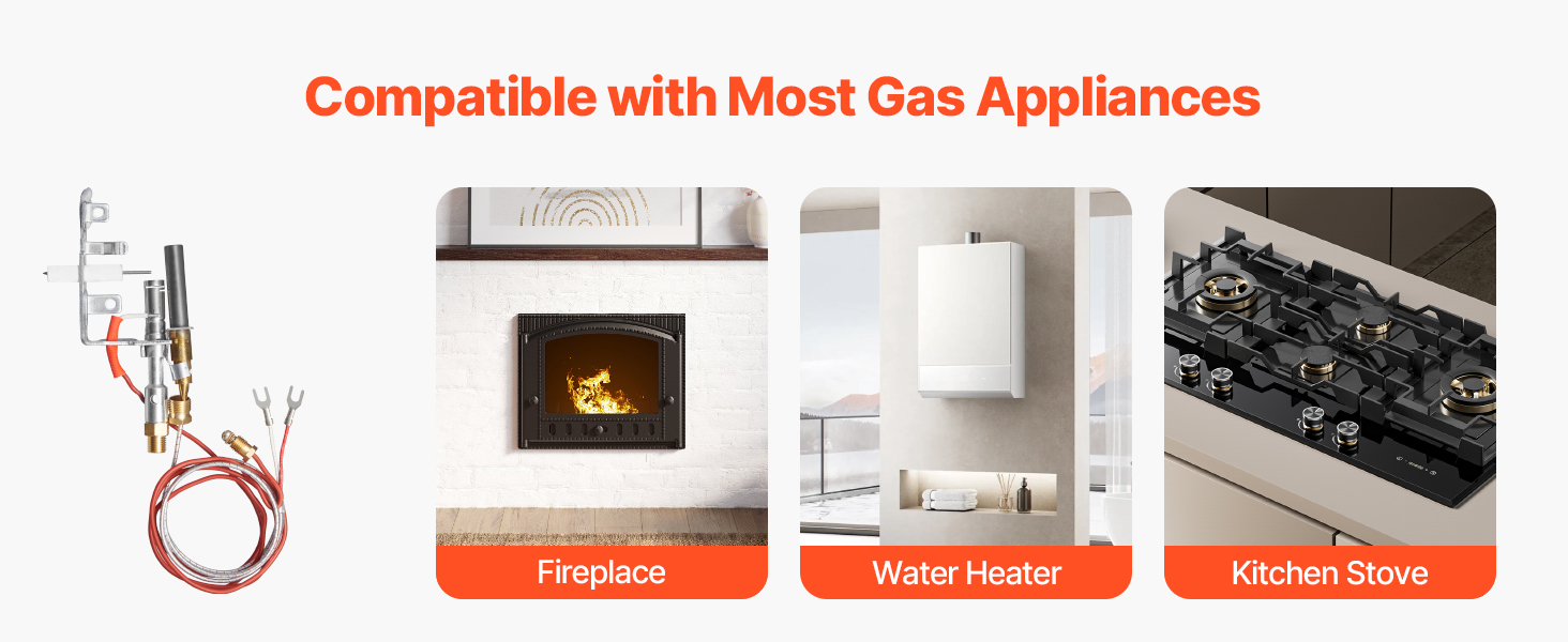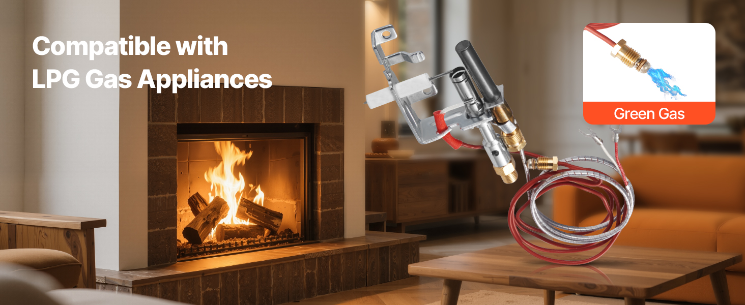 Táto zostava plynového pilotného zapaľovania je kompatibilná s väčšinou bežných krbov na trhu. Hodí sa aj na domáce ohrievače vody a kuchynské sporáky, čím ľahko spĺňa potreby zapaľovania rôznych plynových spotrebičov.