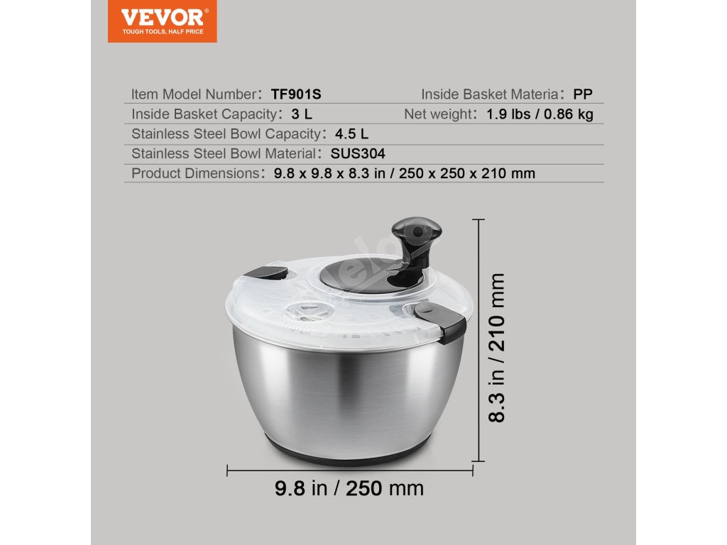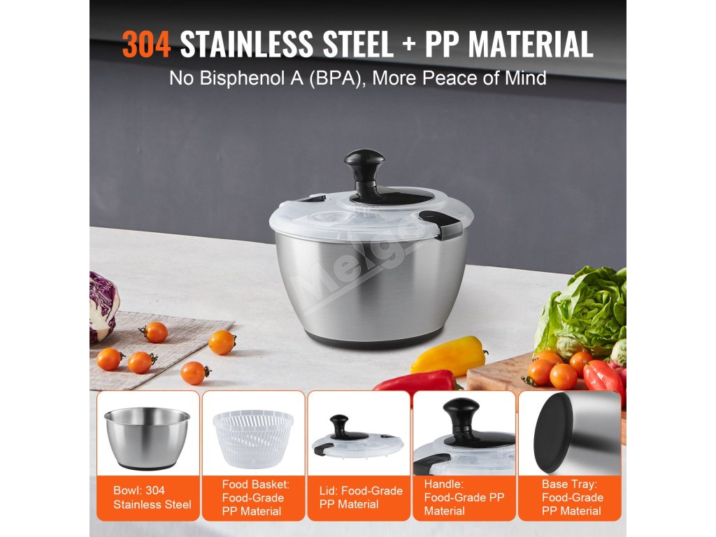Odstredivka na šalát 4.75Qt jednoručná, misa z 304 nerezovej ocele
