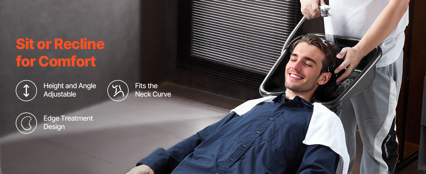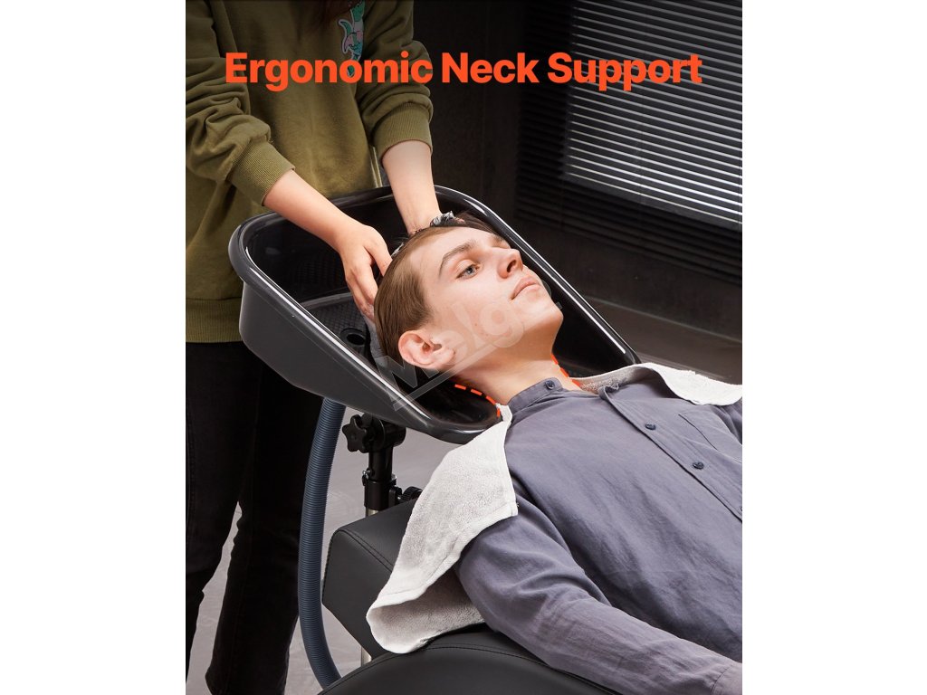 Okraje salónneho umývadla sú starostlivo vytvorené tak, aby sa jemne prispôsobili krivke krku. Vďaka nastaviteľnej výške a uhlu poskytuje pohodlie, či už sedíte, alebo ležíte, čím zabezpečuje relaxáciu a príjemnú starostlivosť o vlasy.