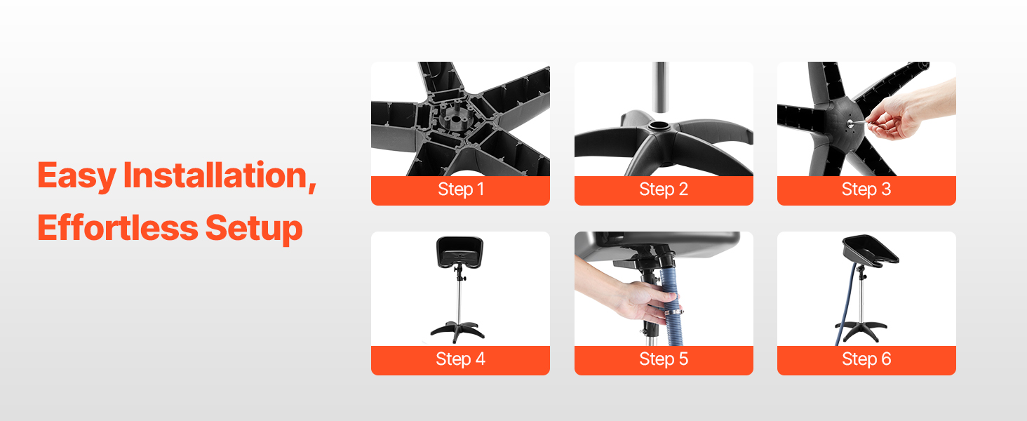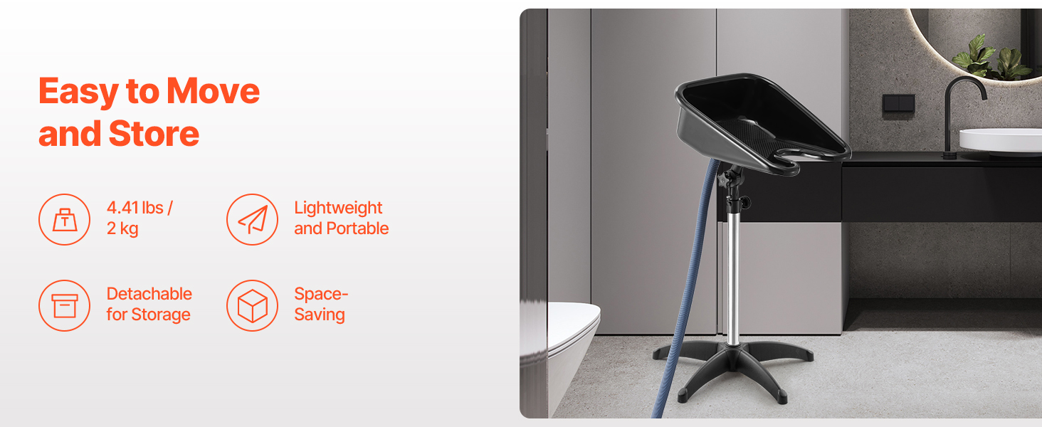 Prenosnú šampónovú misu môžete rýchlo nainštalovať a demontovať sami podľa priloženého návodu alebo inštalačného videa. Je jednoduchá a pohodlná na každodennú mobilitu, čistenie a skladovanie.