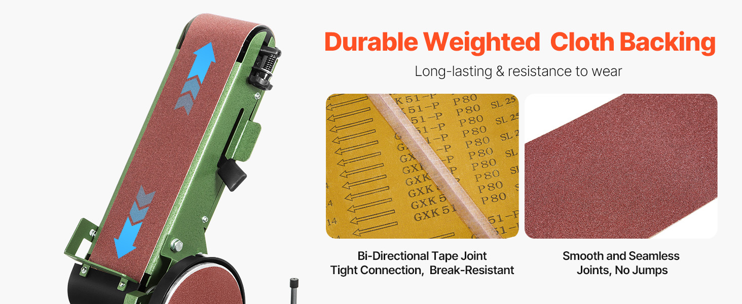 Naše pásové brúsne pásy sú vybavené silným látkovým podkladom pre dlhotrvajúcu životnosť a odolnosť proti opotrebovaniu. Obojsmerný spoj pásu zaisťuje pevné spojenie odolné proti pretrhnutiu a poskytuje hladký chod bez poskakovania počas používania.