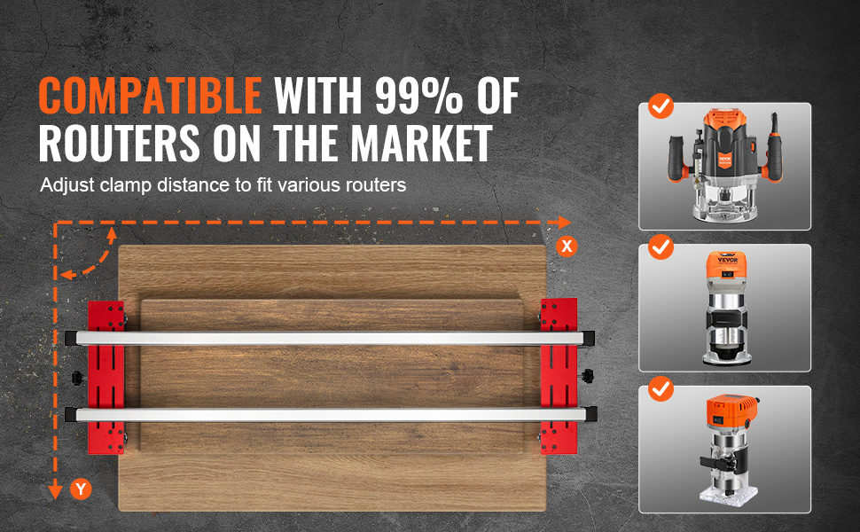Náš prípravok na výrobu dosiek sa dokonale hodí pre väčšinu frézovačiek! Vďaka nastaviteľnej vzdialenosti upnutia a prepínateľným osiam X a Y je pripravený na vyrovnávanie drevených dosiek s veľkosťou až 60 in/1525 mm.