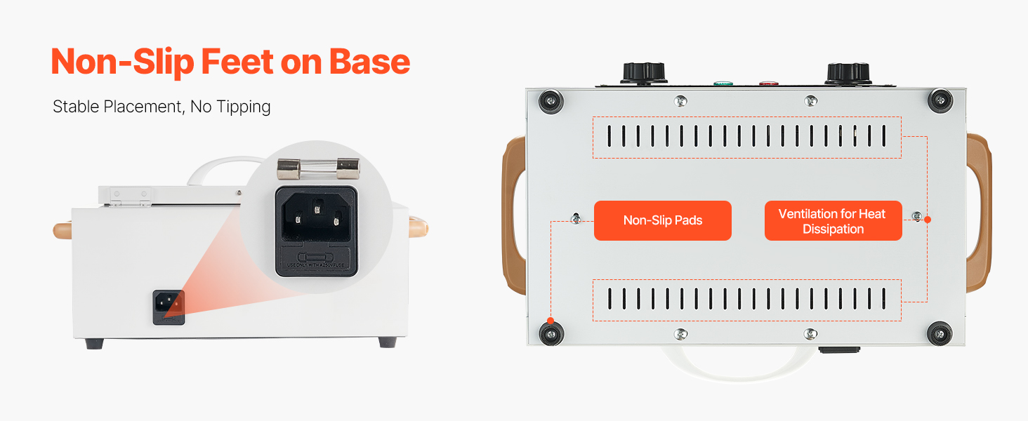 Spodná časť stroja na čistenie nechtov je vybavená protišmykovými nožičkami, ktoré zabezpečujú stabilné umiestnenie a zabraňujú prevráteniu, čím poskytujú bezpečný používateľský zážitok.