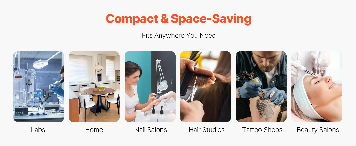 Autoklávovač je vhodný do rôznych prostredí, ako sú domácnosti, nechtové salóny, kozmetické salóny a laboratóriá. Pri čistení nevznikajú nepríjemné pachy, čím sa chráni dýchacia pohoda vašej rodiny.