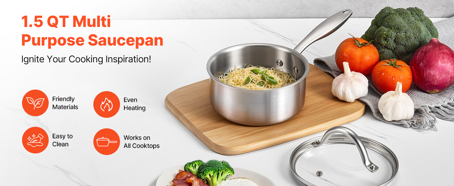 Navrhnutý na viacero spôsobov varenia - náš nerezový kastról je skvelý na varenie rezancov, prípravu omáčok, prípravu polievok, ohrievanie mlieka alebo varenie ovsených vločiek. Skutočne všestranný pomocník do vašej kuchyne.