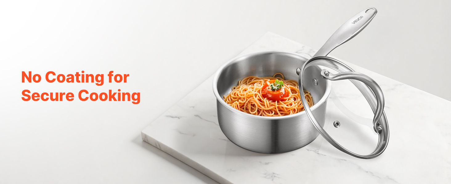 Vyrobený z vysokokvalitnej nehrdzavejúcej ocele 304 bez povrchovej úpravy. Bezpečná a spoľahlivá - nehrozí odlupovanie ani odlupovanie, vďaka čomu je naša panvica s pokrievkou ideálna pre domácich kuchárov.