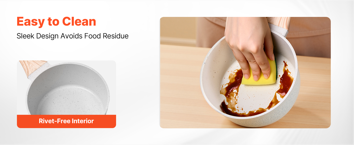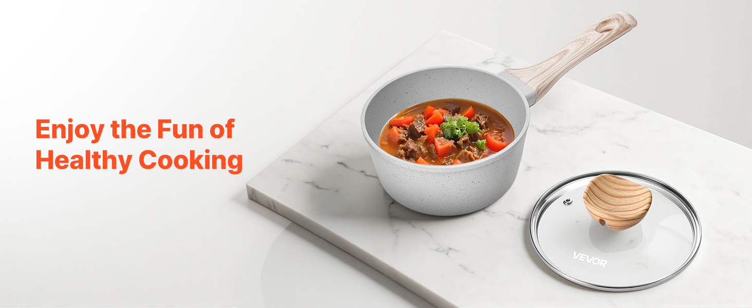 Náš hrniec na omáčku je vybavený mramorovým nepriľnavým povrchom, ktorý umožňuje rovnomerné varenie jedla bez pripaľovania - aj s minimálnym množstvom oleja. Ideálny na bezpečné varenie, vďaka ktorému bude každé jedlo chutné.