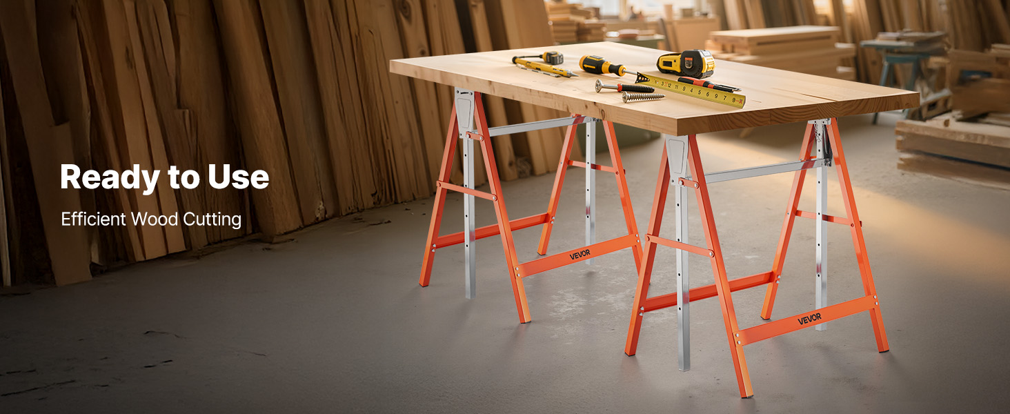 Odolné skladacie jednotky pílového koňa sa umiestnením drevených pásov naprieč premenia na pevný a spoľahlivý stôl na stavenisku - zefektívnia tak rezanie dreva.