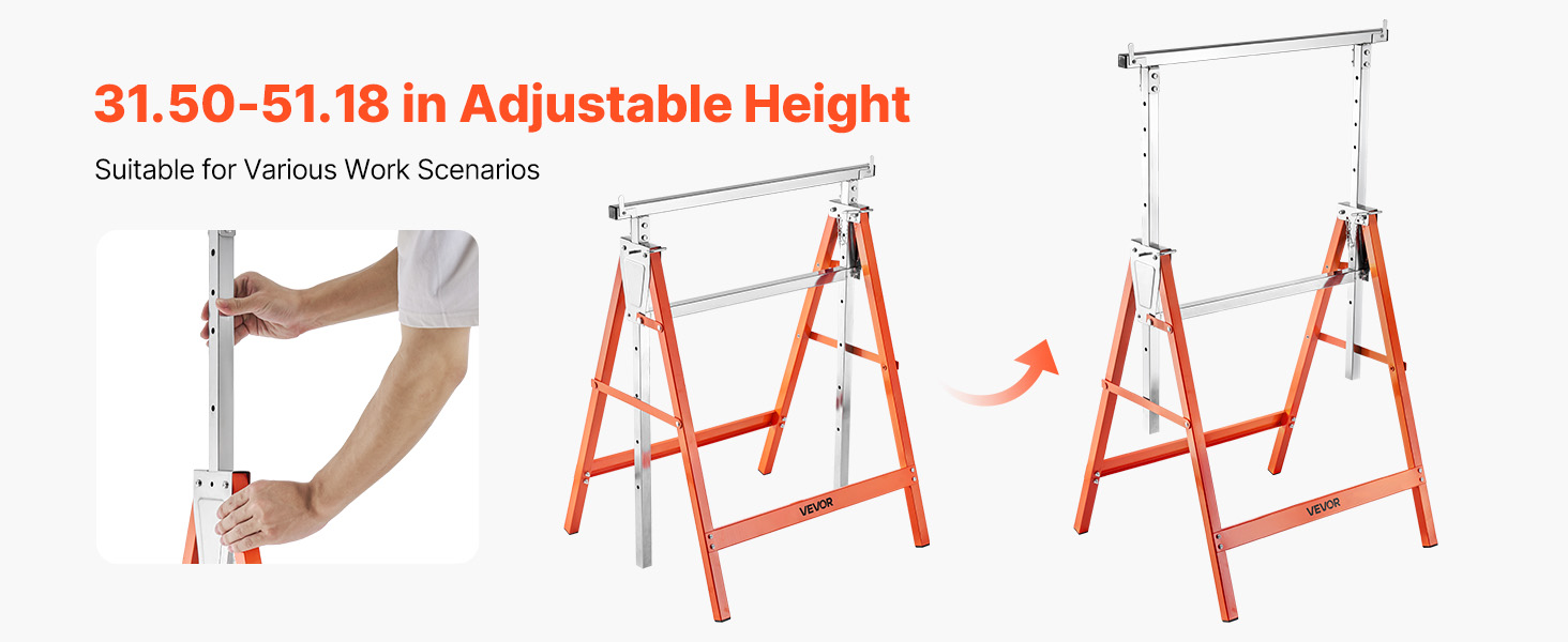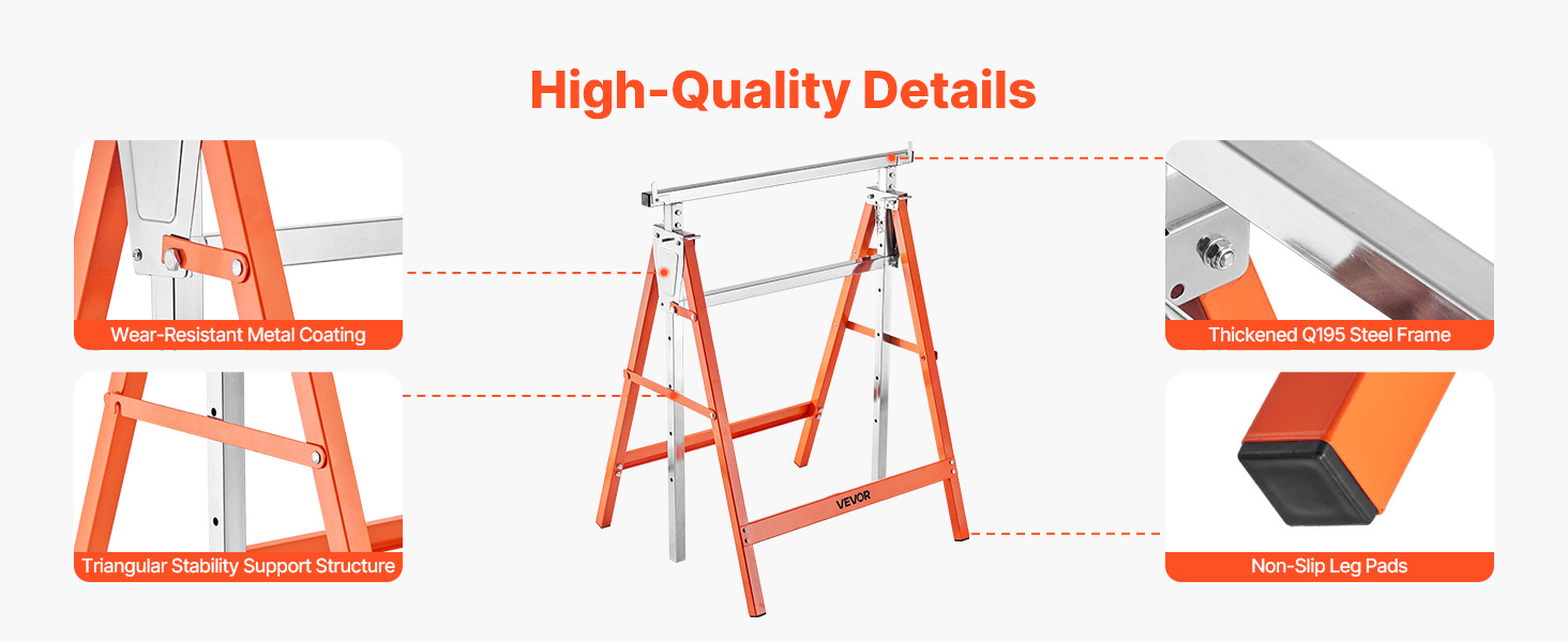 Modely prenosných pílových koníkov s vysokou odolnosťou sú vyrobené z pevnej prvotriednej ocele. Podporné nohy stačí uzamknúť na mieste, aby sa dosiahla vzpriamená prevádzka a stabilná podpora hmotnosti bez kolísania.