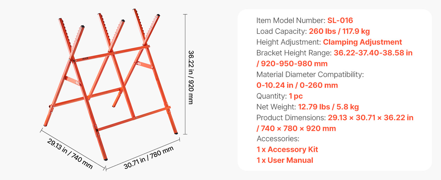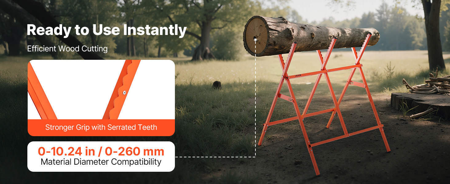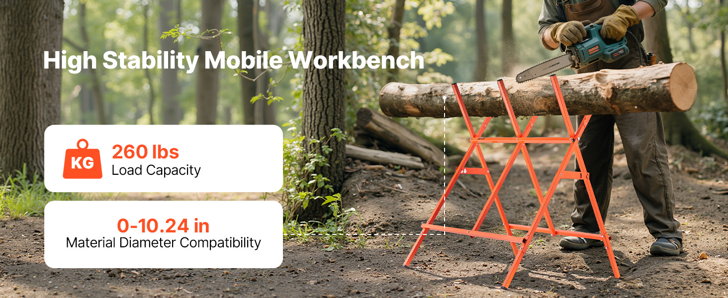 Tento skladací pílový kôň sa nastaví na vhodnú výšku, čo vám umožní pracovať bez ohýbania sa. Postavte ho kdekoľvek, aby vyhovoval vašim potrebám rezania a brúsenia rôznych kmeňov.