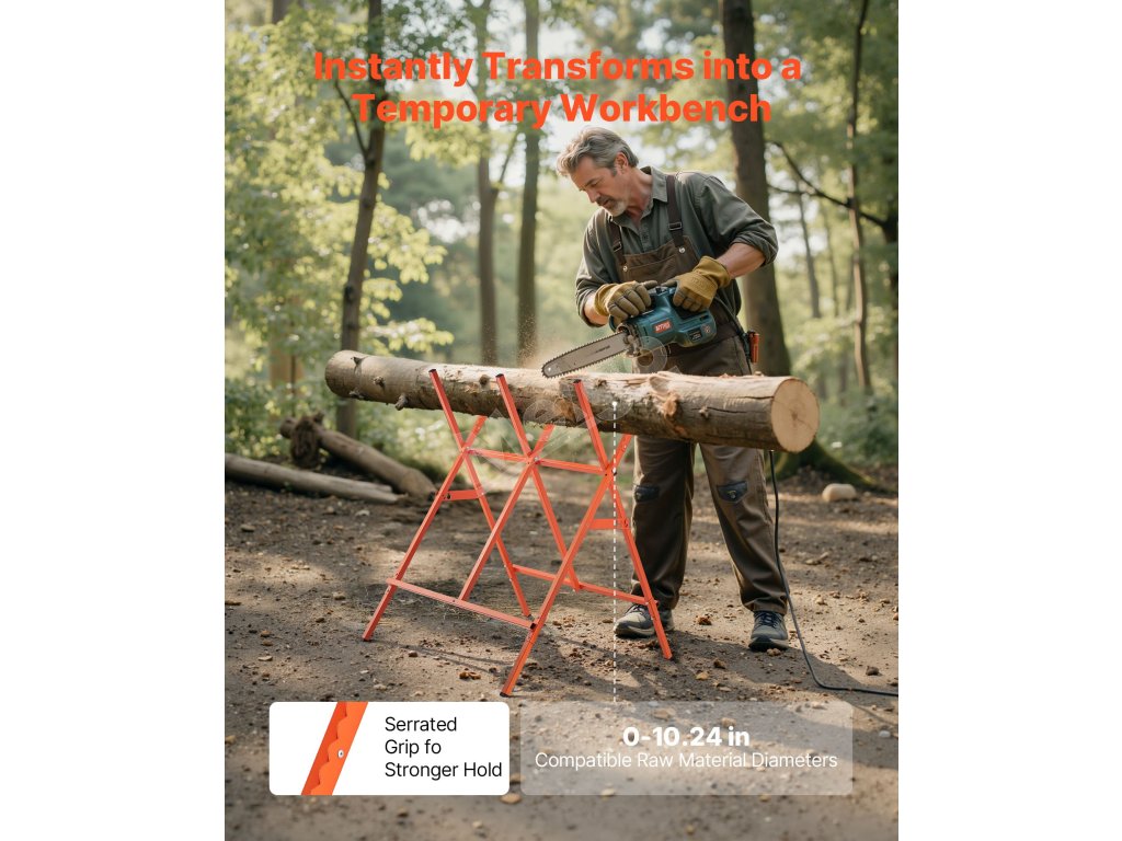 Tento skladací pílový kôň sa nastaví na vhodnú výšku, čo vám umožní pracovať bez ohýbania sa. Postavte ho kdekoľvek, aby vyhovoval vašim potrebám rezania a brúsenia rôznych kmeňov.