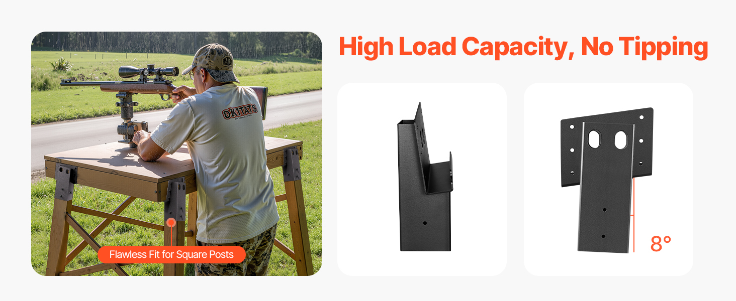 Naklonenie o 8 stupňov zlepšuje rozloženie zaťaženia a znižuje bočné kývanie na zvýšenie stability. Bezchybne sa hodí na štandardné stĺpiky s rozmermi 3,5 × 3,5 palca.