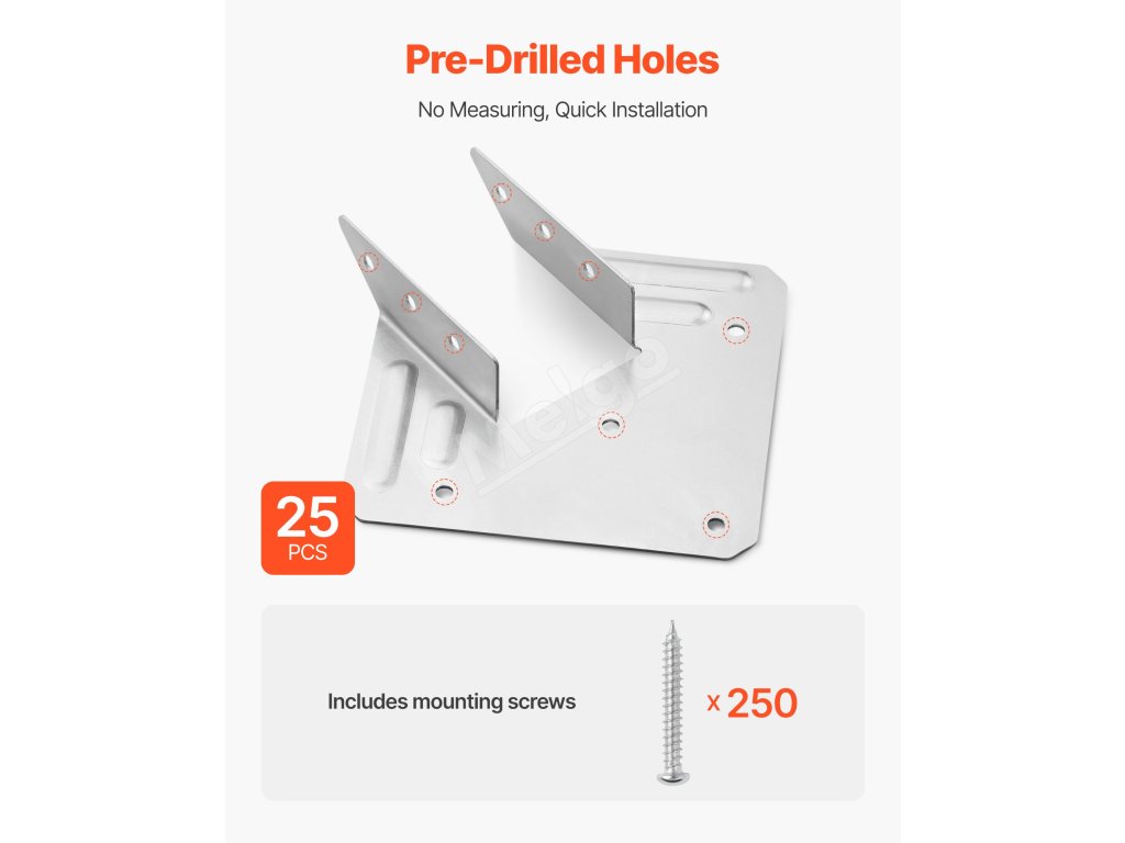 Na rozdiel od tradičných držiakov sa naše držiaky krovu dodávajú s predvŕtanými otvormi - nie je potrebné žiadne meranie. Stačí zarovnať, upevniť a ísť. Šetrí čas a námahu domácim majstrom aj profesionálom.