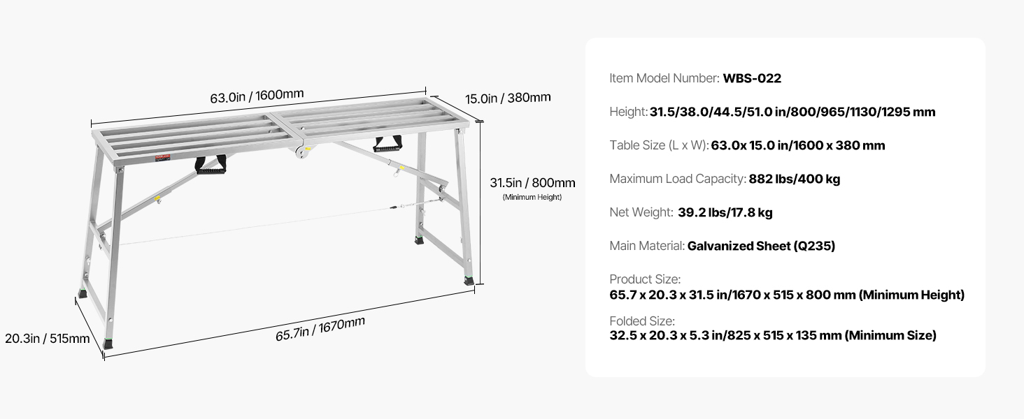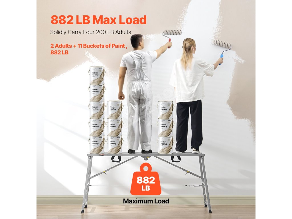 Vysokopevnostný rám z nehrdzavejúcej ocele poskytuje stabilnú polstrovanú plošinu s nosnosťou až 880 kg, vďaka čomu zvládne rôzne úlohy, od maľovania až po údržbu.