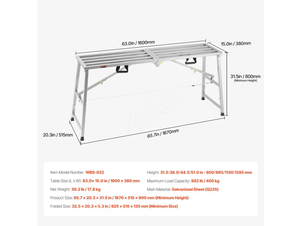 Pracovná skladacia oceľová plošina, 4 polohy výšky, nosnosť 800 lb